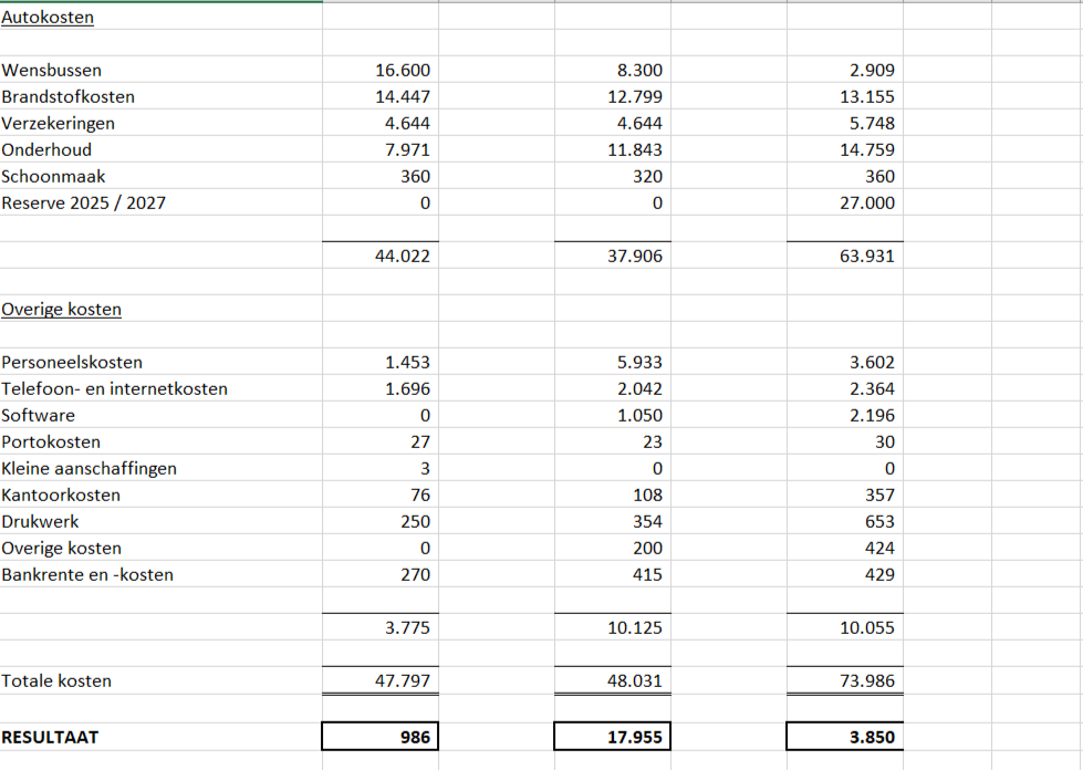 In deze algemene informatie vindt u eerst de gegevens (het financiële gedeelte en het overzicht van de bussen) over 2024 en daar onder de gegevens over 2023.